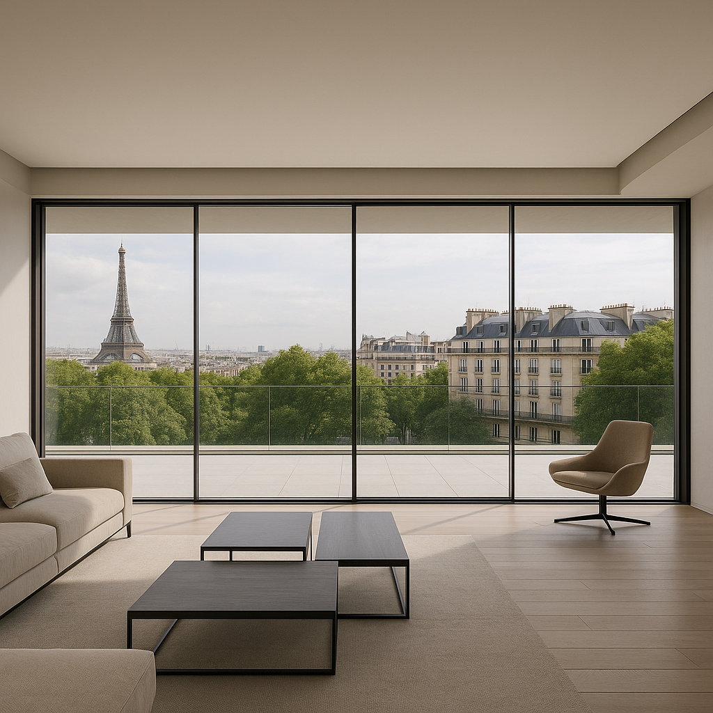 À Paris, chaque mètre carré a de la valeur — chaque perspective aussi. Pour les projets architecturaux de prestige, qu’il s’agisse d’un penthouse avenue Montaigne ou d’un hôtel particulier réhabilité, ViewFrame propose des baies coulissantes invisibles qui conjuguent minimalisme et haute technicité.